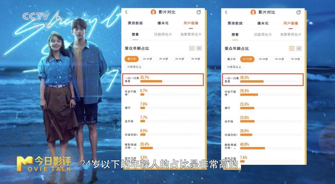 最后不得不提的是“人和”,《一闪一闪亮星星》非常精准地瞄准了影片自身的目标受众——年轻女性观众为主,三、四线城市观众居多。