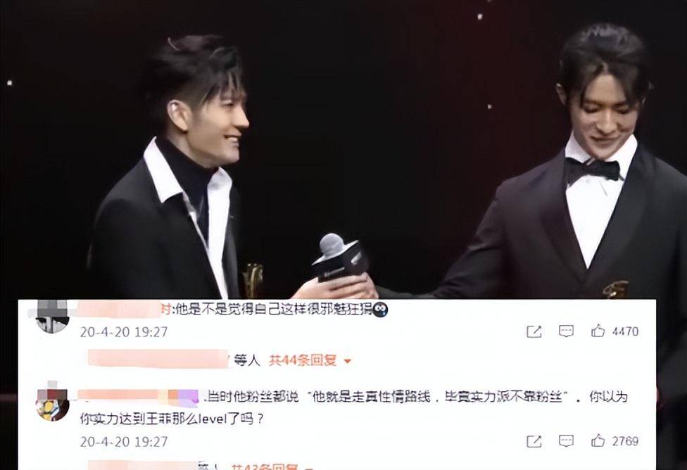 别人发布获奖感言,不至于大段话,但也胜在真诚,反观他拿奖的时候邪魅一笑,只说了两个字感谢。