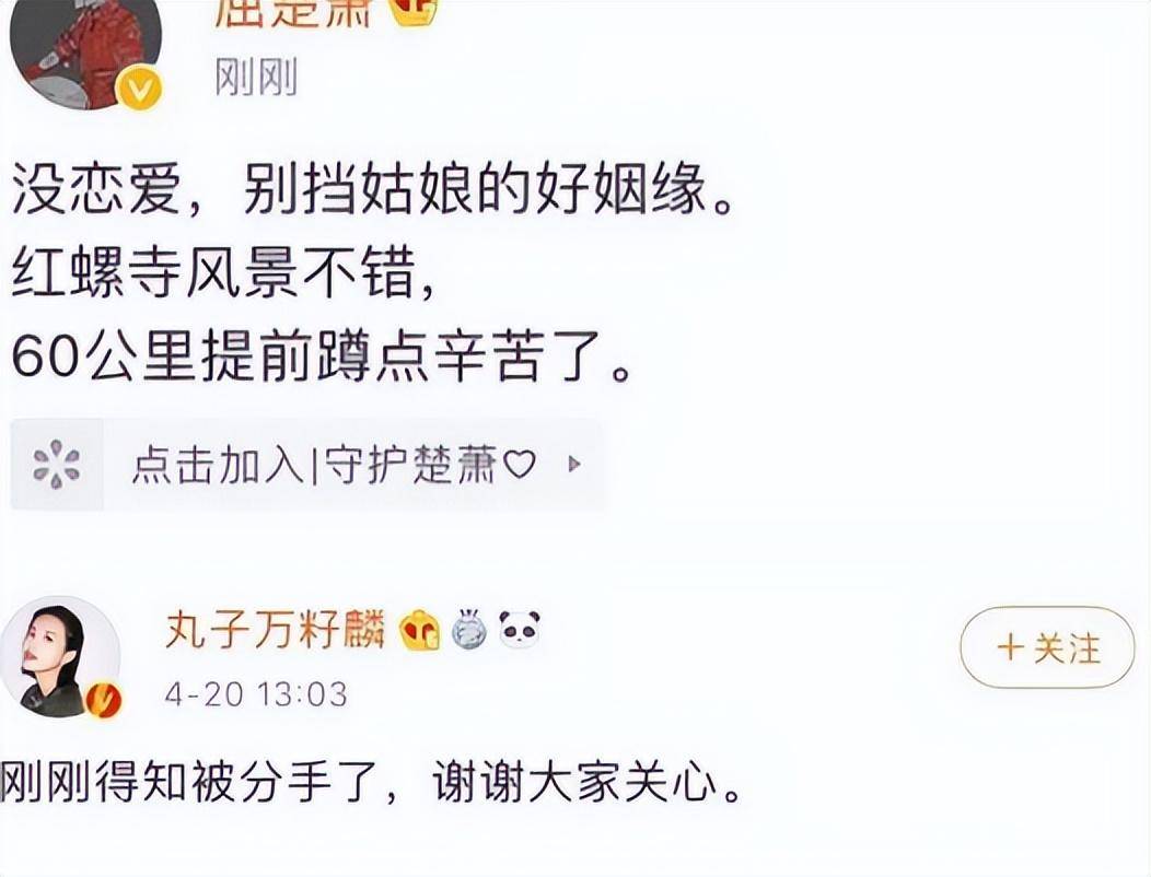 结果他宣称是拜把子,女方却控诉她被屈楚萧分手了。