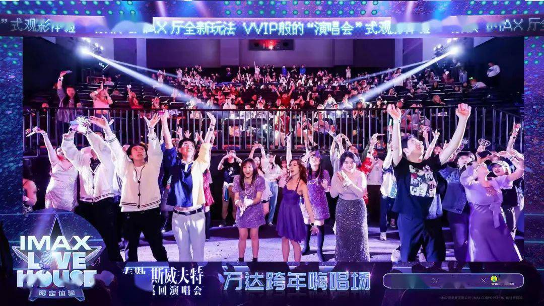 《泰勒·斯威夫特:时代巡回演唱会》的观影现场,观众们在影院内举着应援灯牌、站起来跟随泰勒一起大合唱,是如同参加演唱会一般的体验;
