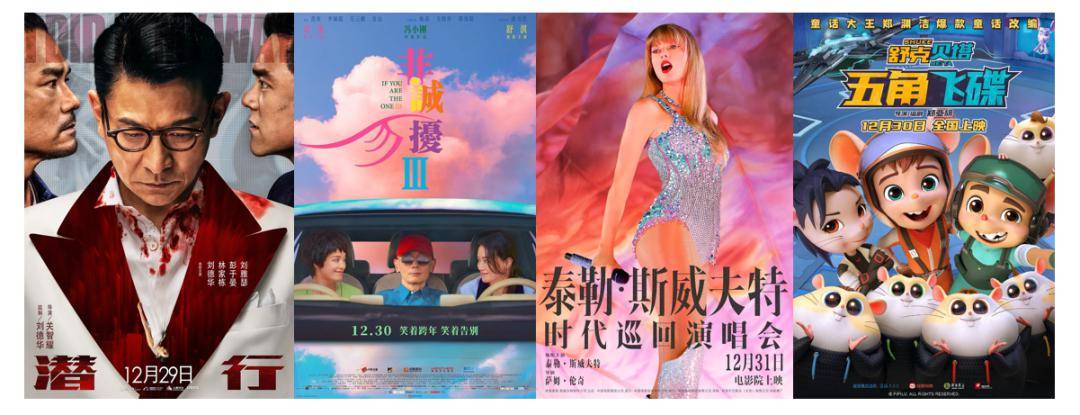 今年元旦档放映的影片数量也创造历史新高,共有七部新片入市,包括爱情片《一闪一闪亮星星》《非诚勿扰3》,喜剧片《年会不能停!》,犯罪悬疑片《金手指》《潜行》,演唱会纪录片《泰勒·斯威夫特:时代巡回演唱会》,动画片;此外还有重映影片,再加上仍在热映中的等,数十部新老影片轮番上映,类型丰富,足以让观众在购票软件里挑花眼。