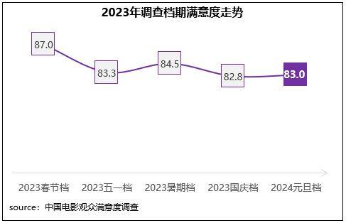 2023年元旦档调查的5部影片均获得观众“满意”评价(≥80分)且均高于81分,与历史调查的19部元旦档影片相比,2023年元旦档影片满意度综合表现较优,有4部影片进入同期TOP10、3部进入TOP5。