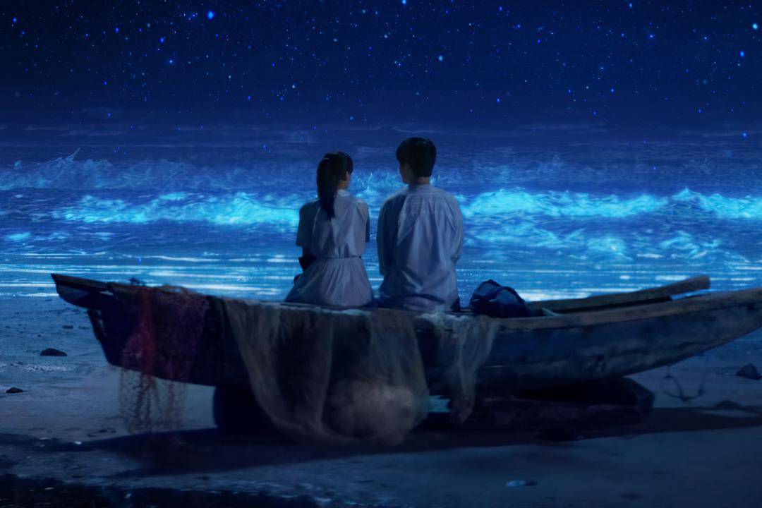 夜半的荧光海边,两个人肩并肩坐在一起,各怀心事。林北星提议玩假话游戏,张万森说的都是“我学习不好”“我没有一米八”这种一听就是假话的玩笑,林北星却说,“我其实有超能力”“我一点都不想去看那场演唱会”。