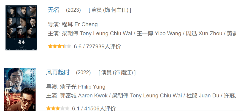 至于曾经港圈最风光的“影帝”梁朝伟,在近几年一部又一部的烂片中早已经消耗了观众的滤镜,从他上一部作品《无名》和《风再起时》反响平平就能看出。
