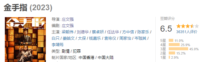 至于口碑方面,《金手指》豆瓣6.5,猫眼9.3,淘票票8.9;《潜行》豆瓣6.1,猫眼8.8,淘票票9.3——都不算好,但不得不说,猫、淘两边的评分,都“心照不宣”地偏向自家发行的电影。