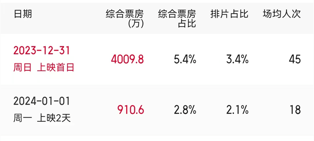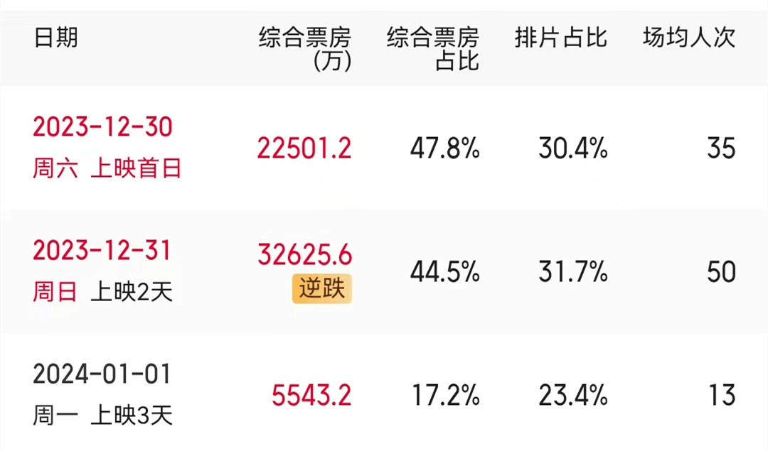 对仪式感的预期光速破灭,也就带来了票房跨年后的大幅下滑。