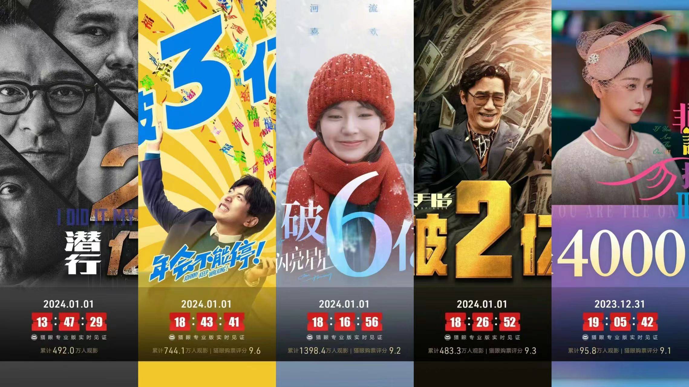 刘德华、彭于晏、林家栋、刘雅瑟主演犯罪动作电影《潜行》首周3天收1.85亿排名第三,截止目前累计2.24亿;