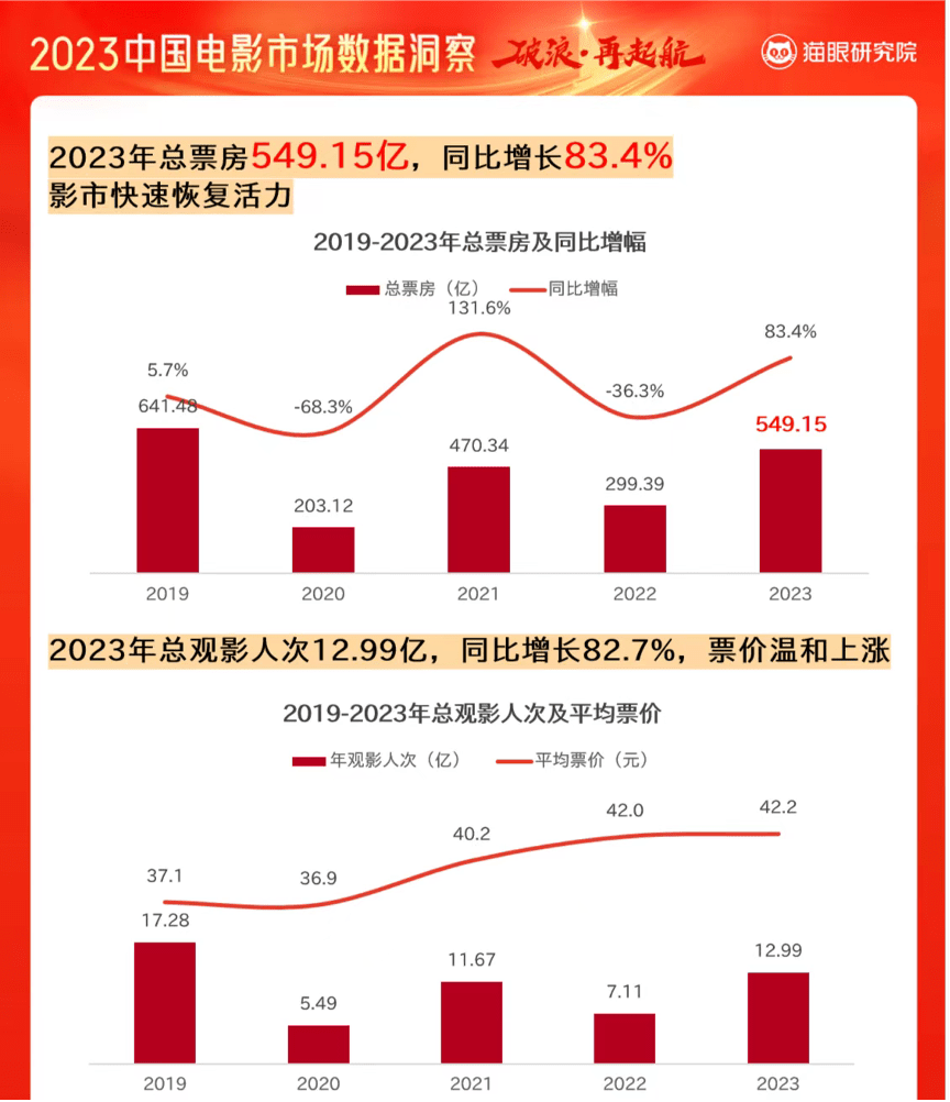 原标题:猫眼研究院:2023中国电影票房549.15亿元 观影人次12.99亿创新高