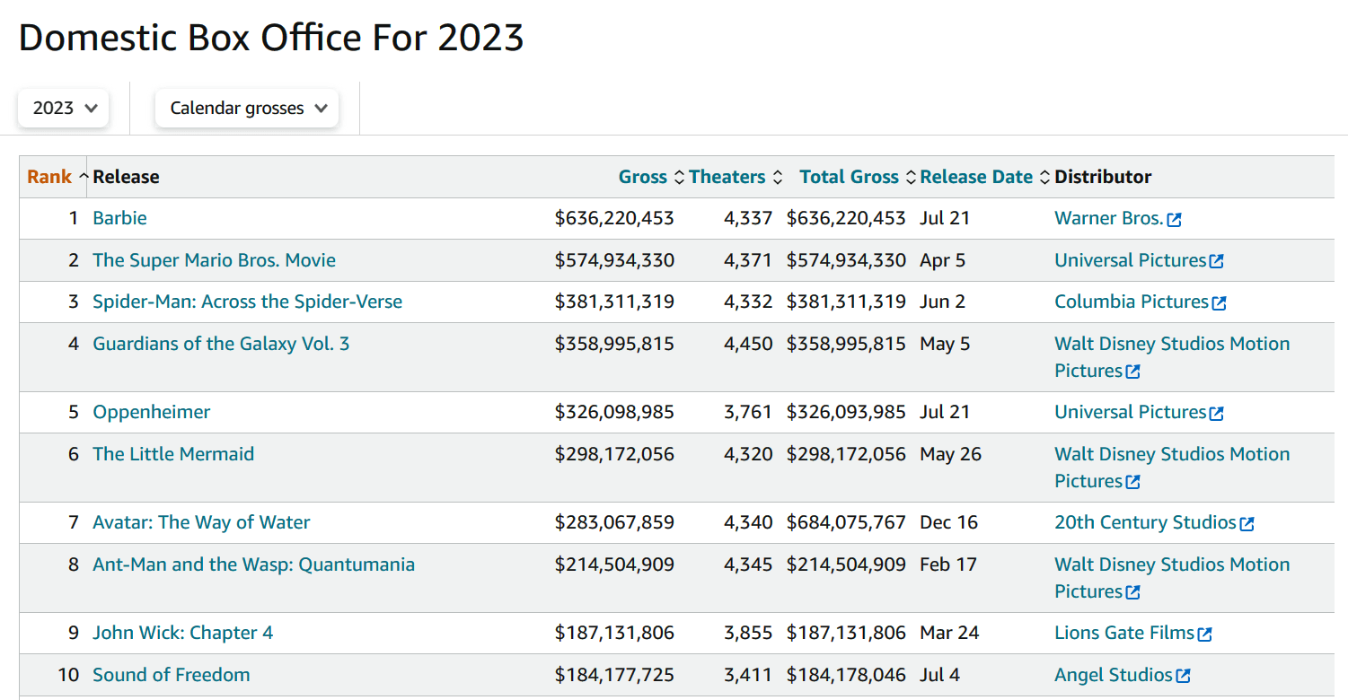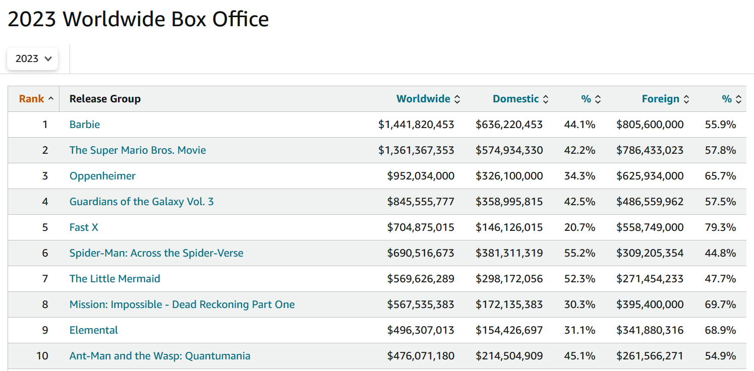 2023北美票房破90亿美元 环球拿下北美年度票房冠军