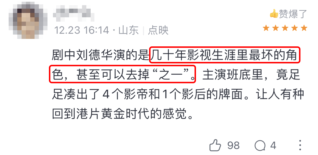 “刘德华迄今演过最坏的角色,甚至可以去掉‘之一’。”