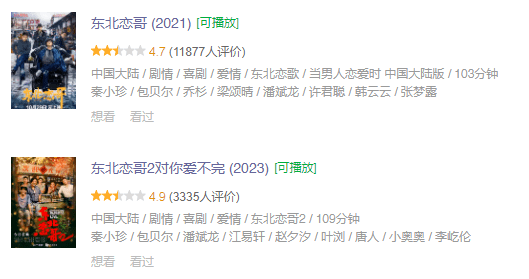 比如8分的《当男人恋爱时》,他翻拍了个《东北恋哥》。