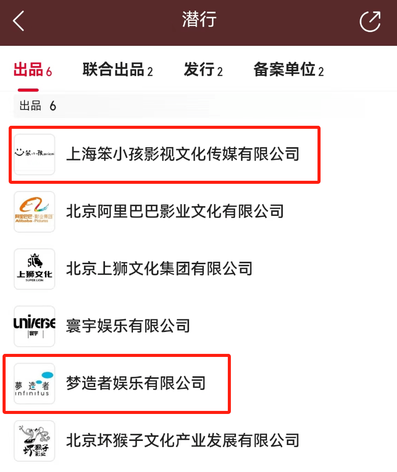 但《潜行》全然不同。刘德华不但是男一号、监制,他也是电影幕后大老板。《潜行》6家出品方,排在第一位的上海笨小孩影视和第五位的梦造者娱乐都是刘德华的公司。而且《潜行》参与出品的公司不多,一共只有6家出品方和2家联合出品方,说明每一家的投资份额都不会少。
