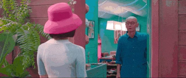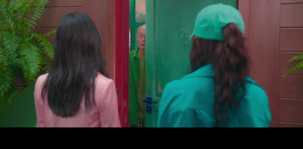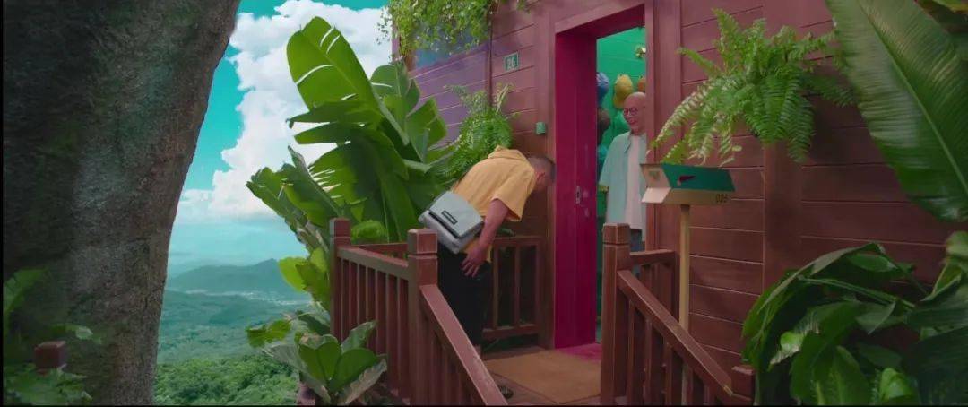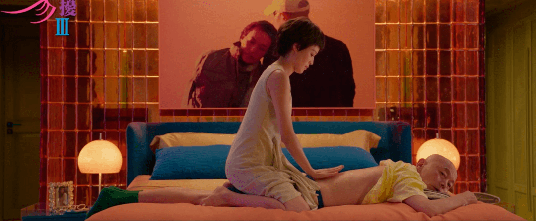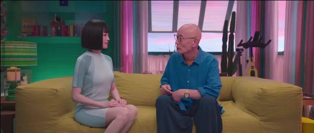 而这样的颜色,是导演的巧思设置。冯氏喜剧,无论外壳还是内核往往主打一个对现实的幽默戏谑,写实性是无法丢弃的。而只有童话世界,甚至如养老院等特定性场景,才会有如此强烈丰富的视觉色彩。