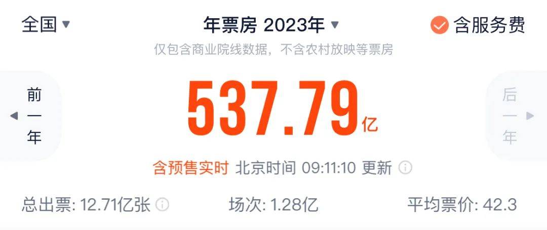 今年的国内电影市场票房截至今天9:00已经达到538亿元,相比去年(299亿)提升了接近八成,观影人次也比去年多了接近5.5亿。