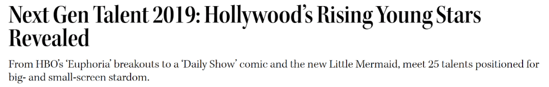 2019年11月6日,《好莱坞报道者》公布了其评选出的2019年25位新一代好莱坞新星名单,现在回过头来看,其中真正脱颖而出的演员寥寥无几,好莱坞新星大洗牌。
