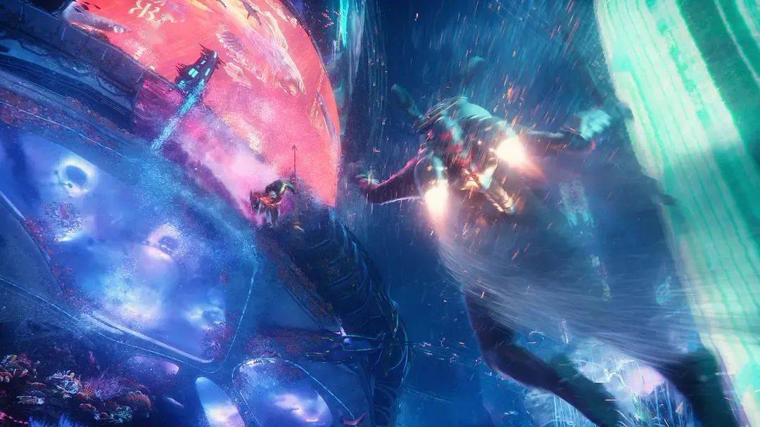 从场景设计、特效制作到瑰丽色彩和音乐上,《海王2:失落的王国》都让人在观影过程中眼前一亮,从蔚蓝的海底世界到极地寒冬冰川,相当震撼。