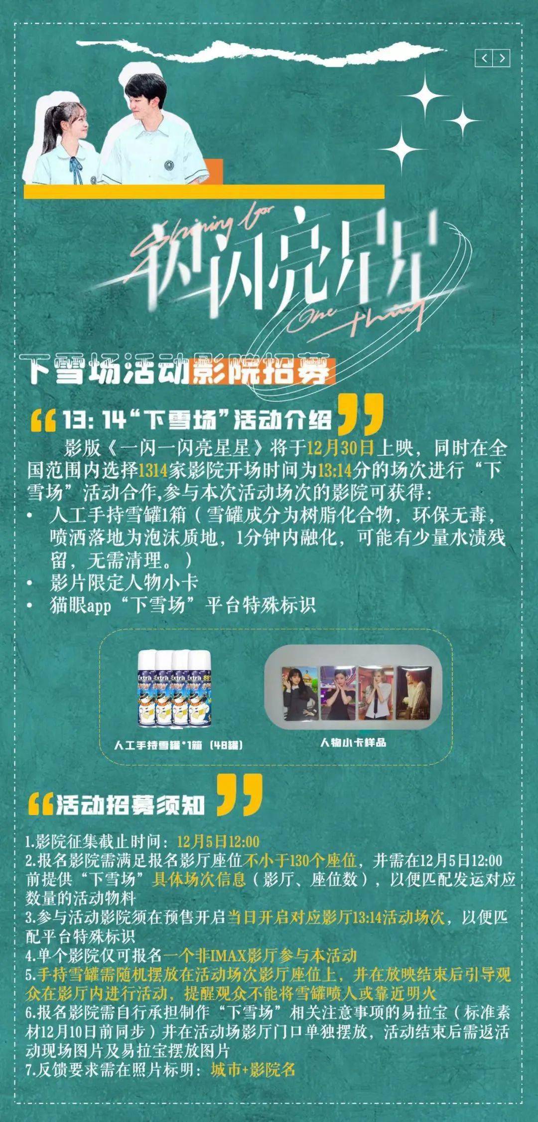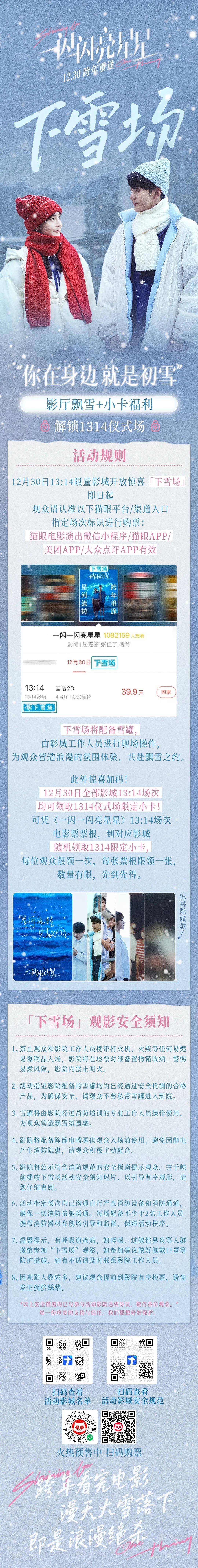 随着年末的临近,多部电影即将与观众见面。在正式见面之前,都开始“花式营销”吸引观众的注意。《年会不能停!》设置啤酒场,让大家边看电影边喝酒;《一闪一闪亮星星》上映当天在全国1314家影城13时14分场次举行“下雪场”活动。
