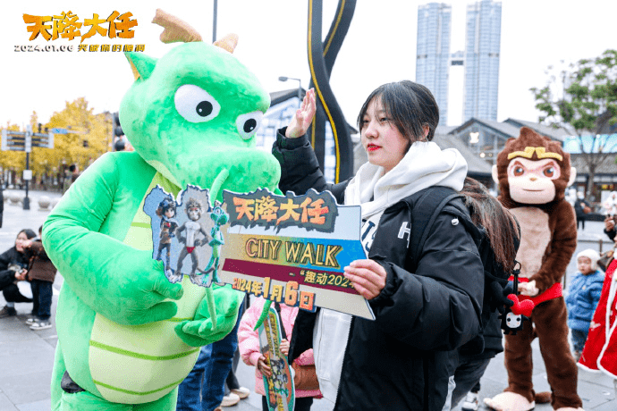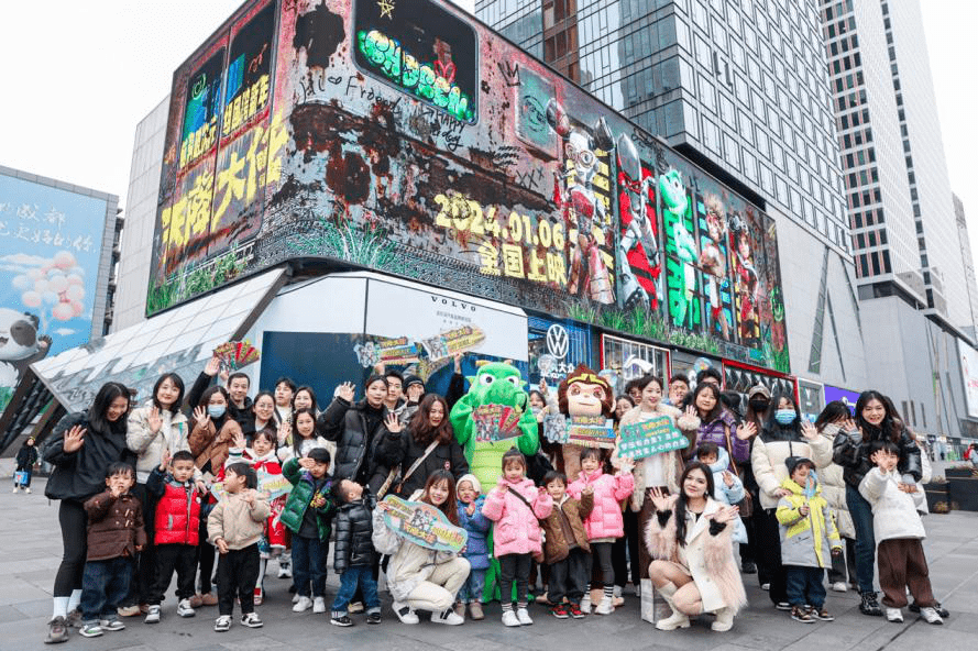 这不,行动派主角们已经提前踏上旅途——空和蒲牢前脚还在少林寺会名师、学功夫、一同祈福,后脚又奔赴全国多个城市举办“转运接福”主题巡游,带着3D大屏空降成都与观众们提前线下互动。