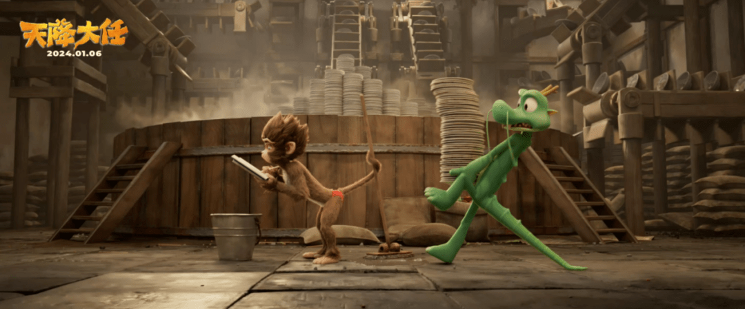 曾经在神话里出现的龙、猴、仙人们摇身一变有了新身份,竟能与现代感十足的机械AI同台对抗。当各种风格元素在同一个故事里相互碰撞,迸发出无数视觉奇观,属于冒险故事的燃爽与喜剧动画的欢乐氛围,亦随之流露而出。