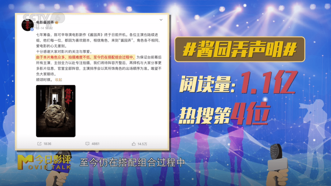 12月14日,片方发布一张概念海报,并表示“本片角色众多,拍摄难度不低,至今仍在搭配组合过程中,为保证台前幕后所有主演、主创全力以赴专注拍摄,电影将待阵容齐整后,再择机与大家分享更多影片信息,官宣全部阵容,主演排序会以其所饰角色的出场顺序为准。唯望不负大家期待。”这才让这场番位之争暂告一段落。