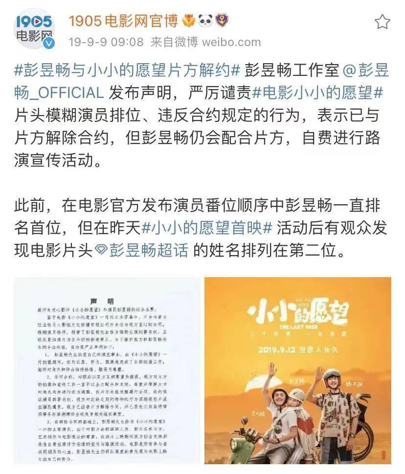 电影《小小的愿望》剧组就曾因为番位问题直接在微博上“发函对质”。上映前夕,主演之一就公开控诉片方“番位欺诈”,另一方演员也力证自己白纸黑字的“男一号”,尽管《小小的愿望》制作方紧急致歉,表示是自己的失误,但作为一部讲述“兄弟情”的电影,观众在观看电影时恐怕就很难相信他们之间的“兄弟情深”。