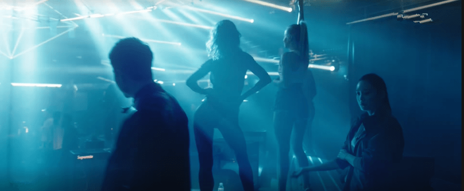 因此,一群小毒枭开始绑架了一个小女孩。这个小女孩,是缉毒人员的子弟。男主这边,又进入到了找小女孩的状态。找就找呗,《雷霆扫毒》再次管不住自己的创作思路了——男女主角,两个缉毒人员,竟然要到夜总会当中找。尤其是男主这边,和夜总会的女性工作人员更是积极互动。