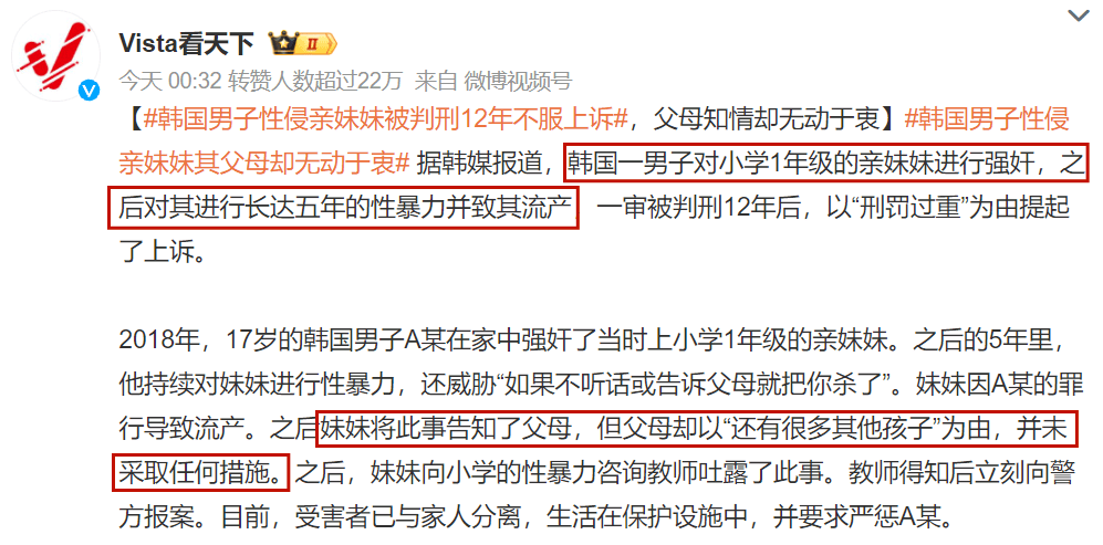韩国一男子性侵小学1年级的亲妹妹,还致其流产。