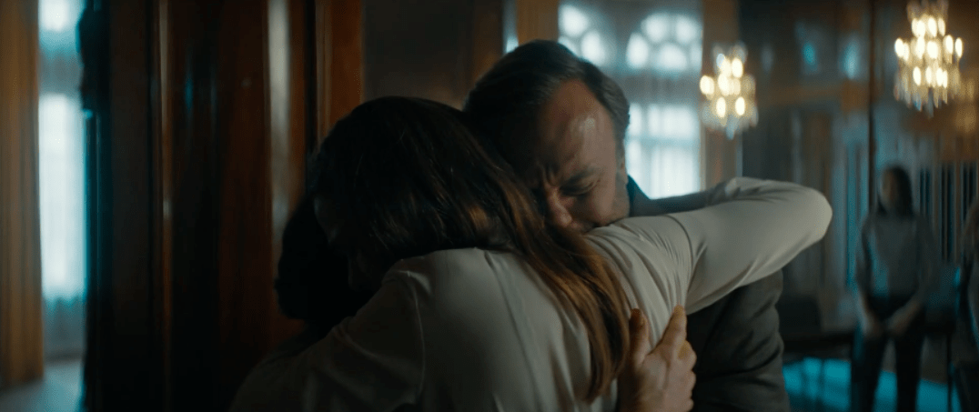 但有意思的是,女儿被控谋杀后,他们就突然化身好莱坞电影里的完美父母,互相拥抱打气,合力解救女儿。