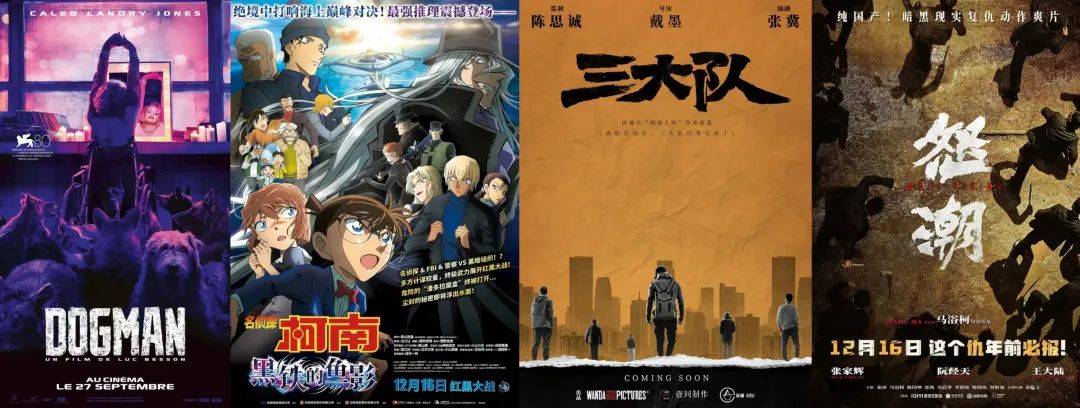 两部进口片分别是柯南2023年剧场版《黑铁的鱼影》和法国名导吕克·贝松的新片《狗神》。