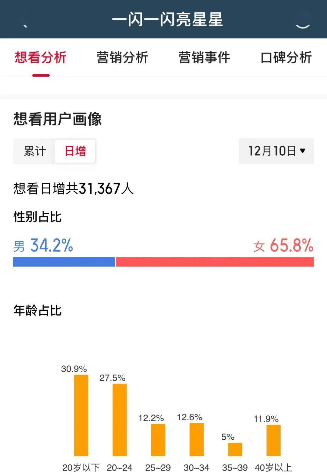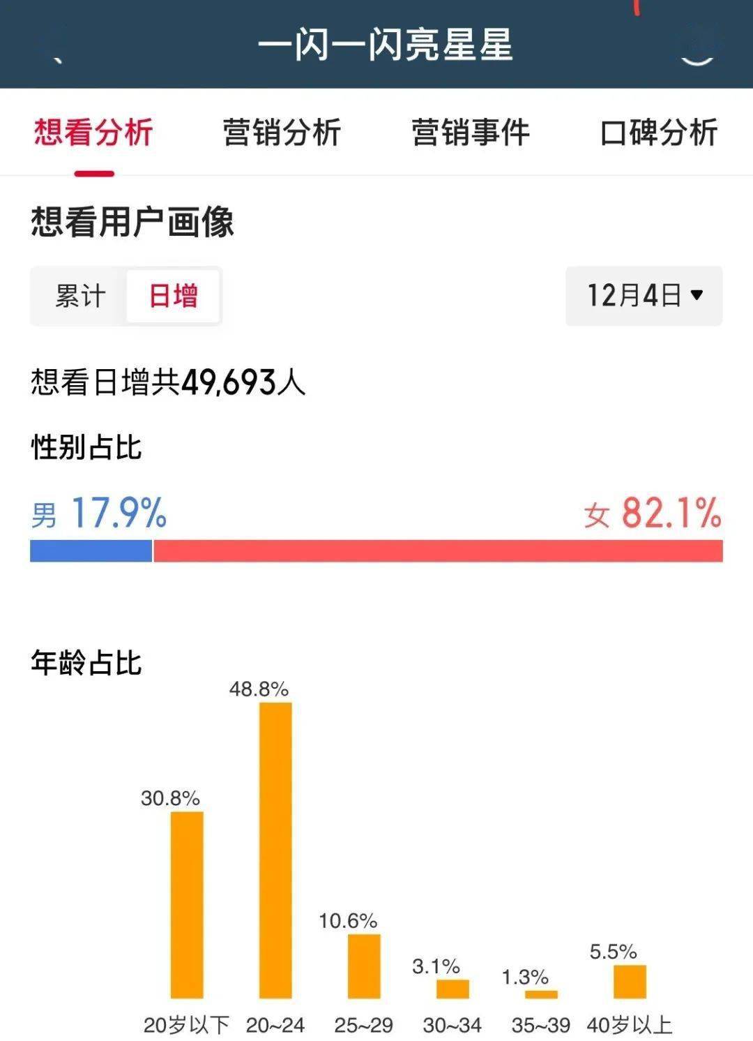 剧集有了较为明确的数据分析之后,我们再来看看目前影版《一闪一闪亮星星》的受众情况。
