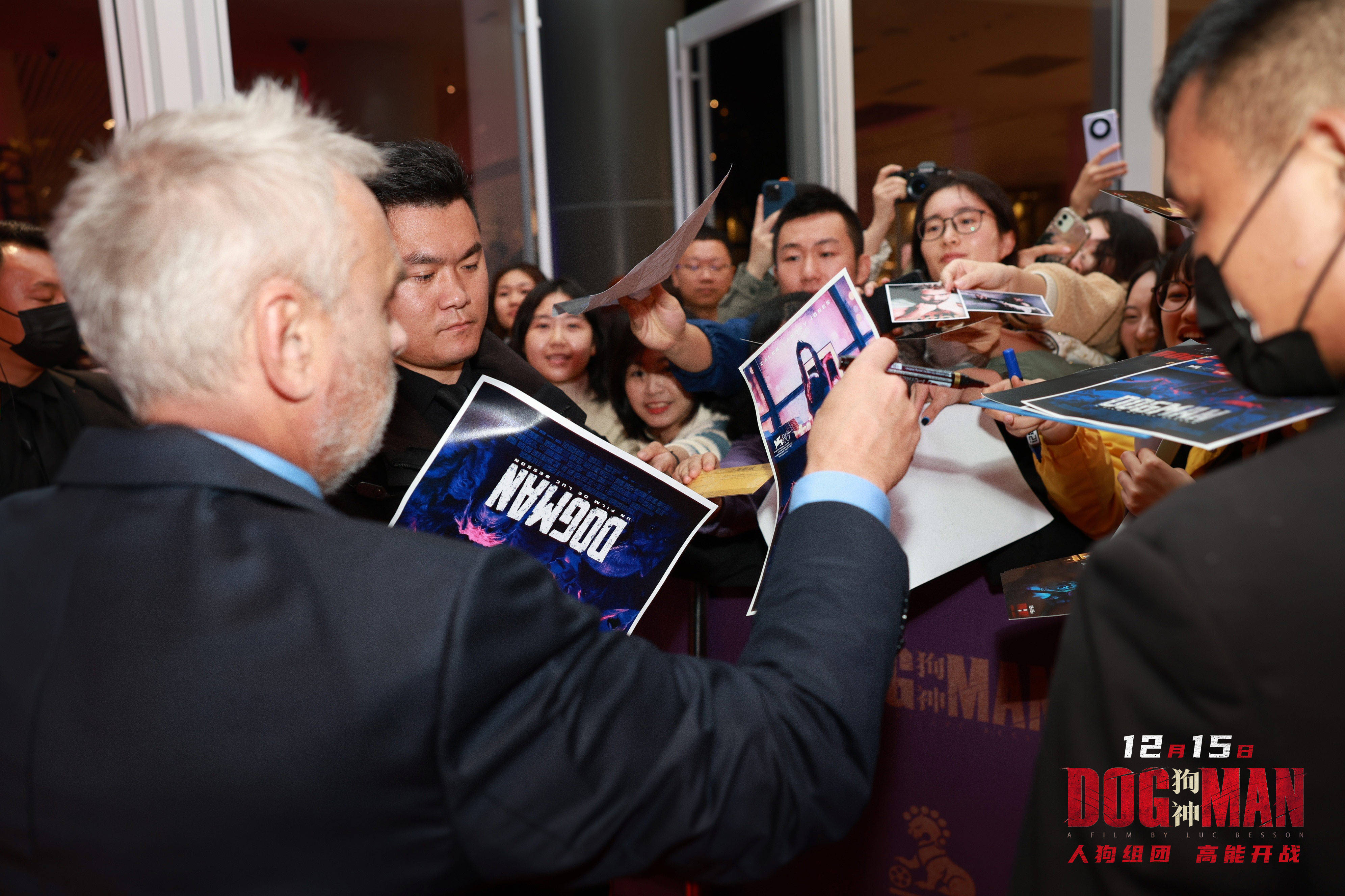 在映后的见面会上,观众提及最多的问题就是导演如何执导现场的“狗狗群演”拍戏,吕克·贝松坦言“很难也很混乱”,并向观众吐露电影中有6只专门配备训练师的狗,它们“从不跟其它狗狗玩耍”“明星架子十足”,幽默生动的描述引得观众笑场。有观众带来狗狗玩偶让导演与主演现场演示生活中如何“撸狗”,吕克·贝松导演将玩偶紧紧拥入怀中,卡莱伯直接当场下跪与玩偶“贴贴”。