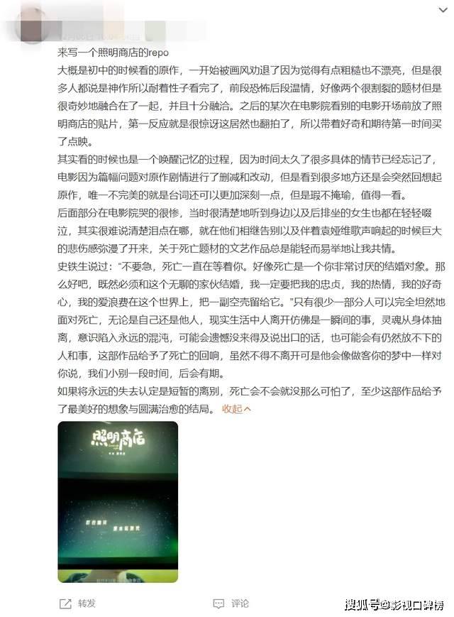 《照明商店》这部电影选择的上映时间其实是集齐了天时地利人和的。这个档期既不像前段时间那样神仙打架,又不像跨年档和春节档一样大片云集,是最适合小成本电影上映的时间点。《照明商店》就很适合这个档期。前期恐怖氛围拉满,后期有进入催泪剧情。如果口碑不错的话,应该能在最大限度内回本。毕竟直到目前为止,该电影的口碑都很正面。