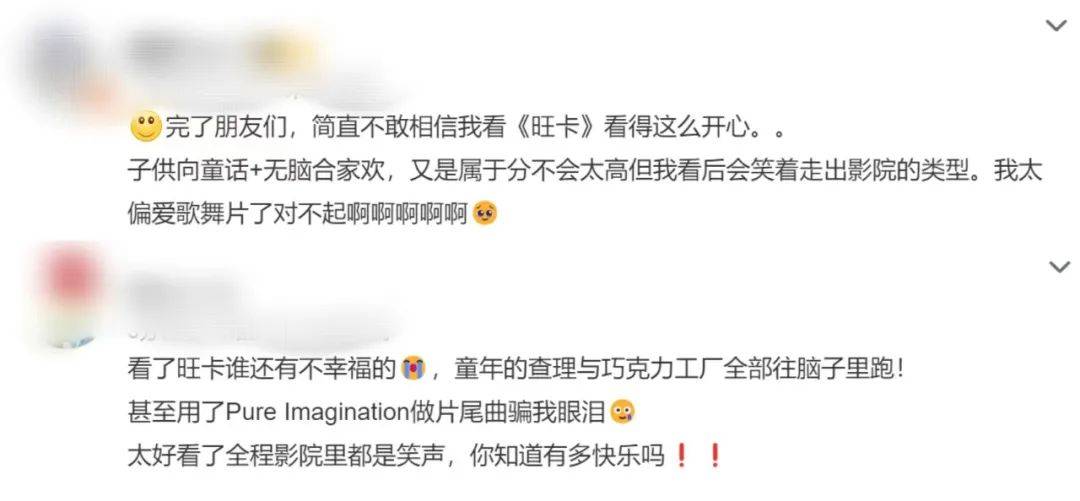 《旺卡》上映当天网上口碑甚佳,各大社交平台的观众反馈也都是好评不断。猫眼开分9.3分,为同期影片最高;豆瓣开分7.5分,这个成绩对于一部纯正的商业片来说已经是一种成功。
