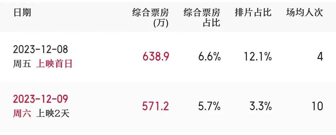 与高口碑相对应的则是本片惨淡的市场表现,《旺卡》即使是部质量不错的歌舞片,在中国市场的票房也不太高,首映不到1000万。同档期内还有三部国产片上映,首映当天排片12%的《旺卡》票房还不如点映的《三大队》,今天排片已经骤降到3.3%了。