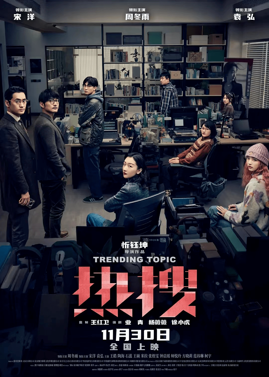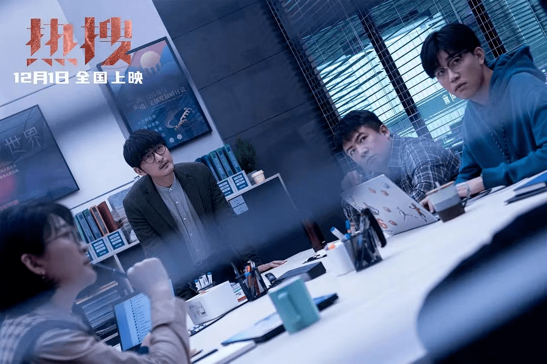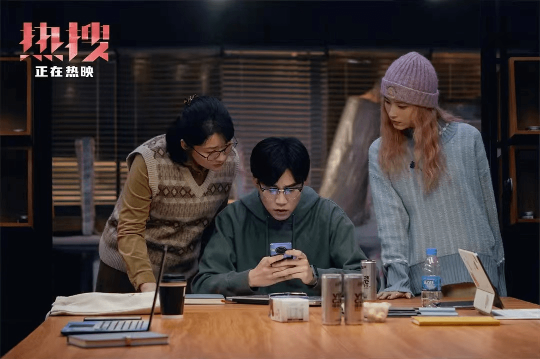 “另外,舆论战是讲博弈的,电影里只要有双方对抗,就会有力量的变化,这也会是抓人的点。两派对抗其实就是战争片,把战争放在办公室里,其实就是商战类型片。怎么把聊天、开会拍出你争我夺的感觉,《热搜》其实是参考了商战类型片。”