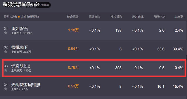 目前,该片上映27天的时间票房才1.1亿,这个成绩对于一部好莱坞漫威电影来说,票房可谓是惨不忍睹,因为当初杀青之后电影还专门进行了补拍,但依然没有挽回跌到谷底的口碑,而且,根据目前实时排名来看,都已经掉至33名了,完全沦为了炮灰的角色。