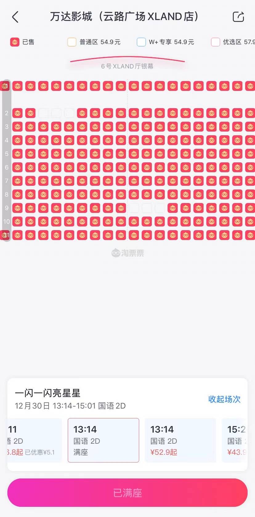 的确12月30日下午13:14点的票都卖完了,只是这一场,其他场次没有这么多人看。