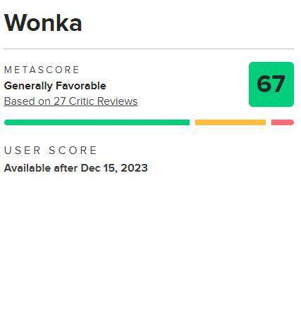 搜狐娱乐讯 保罗·金执导、“甜茶”蒂莫西·柴勒梅德主演的《查理和巧克力工厂》前传电影《旺卡》外媒口碑解禁:烂番茄网站新鲜度79%(46鲜12烂),Metacritic网站综评分67(18优7良2差)。该片12月8日中国内地上映,12月15日北美上映。