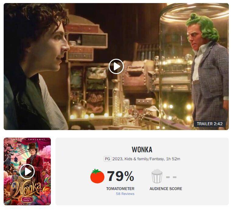 原标题:“甜茶”主演电影《旺卡》外媒口碑解禁 烂番茄新鲜度79%表现平平