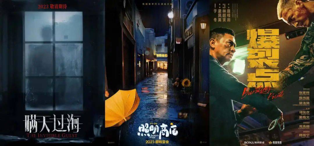 三部国产片分别是许光汉、张钧甯、惠英红、尹正主演的翻拍版《看不见的客人》——《瞒天过海》;蔡婧执导,章若楠、白宇帆、刘奕君主演的温情灵异片《照明商店》;林超贤、唐唯瀚执导,张家辉、陈伟霆主演的警匪动作片《爆裂点》。