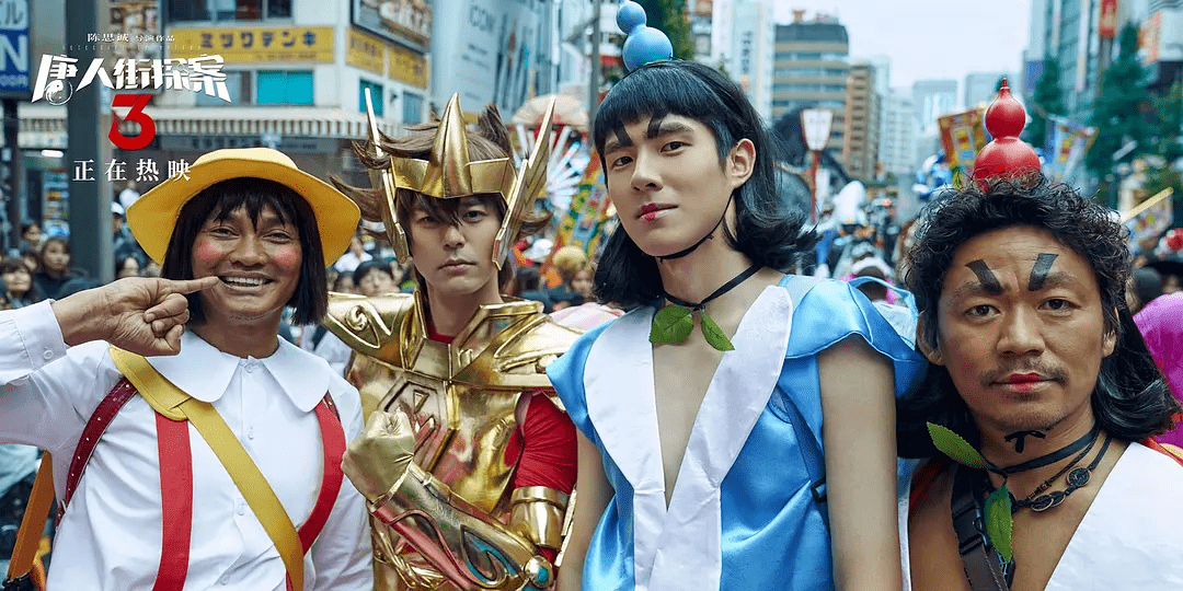 《唐人街探案3》则将故事直接搬到日本,电影中有大量的二次元和动漫元素。角色人物直接空降进“秋叶原cos狂欢”大部队。