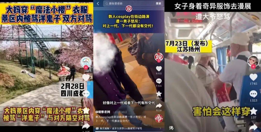近几年,社会中频频被爆出的民生新闻,老一辈人对于cosplay的态度仍旧固执己见,认为这是邪门歪道奇装异服,甚至还会对那些coser进行公共诋毁和辱骂。