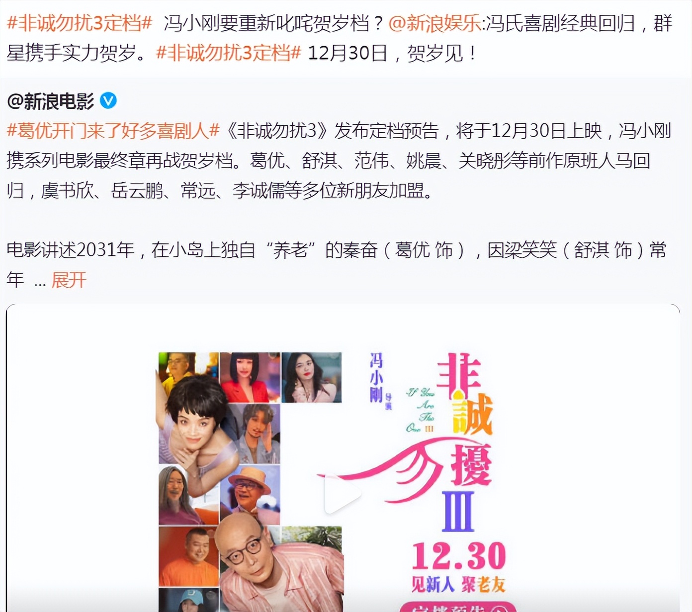 但是随着年龄增加以及其他因素影响,冯小刚这几年电影数量大不如从前,热度口碑也下滑,加上是第三部,也难有太大的惊喜,更像是在消费之前的热度,塞一帮明星凑热闹圈钱而已。所以到时候口碑和票房发酵效果如何,还只能拭目以待。