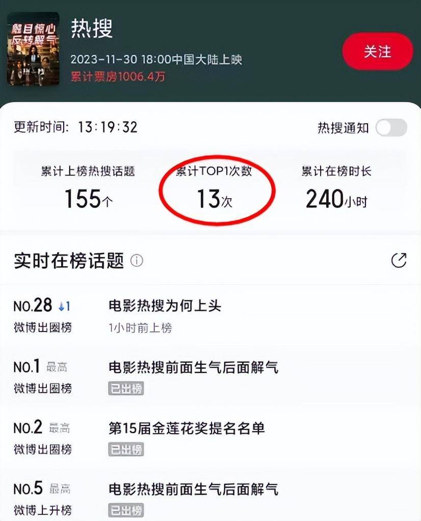 如今累计上榜热搜话题155个,更是有13次拿下热搜第一。