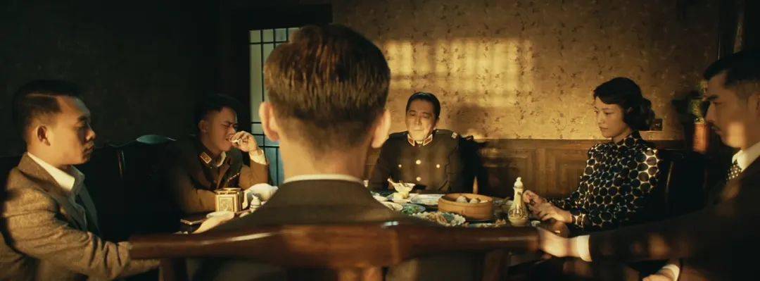 比如对影片中“饭局博弈”的场景印象就特别深刻,汪伪安保局内部成员一场“别开生面”的聚餐,饭桌上人人面色凝重,看似义愤填膺的发言,其他人表面上附和,实则也是各怀鬼胎。