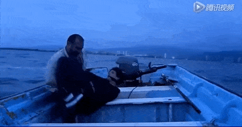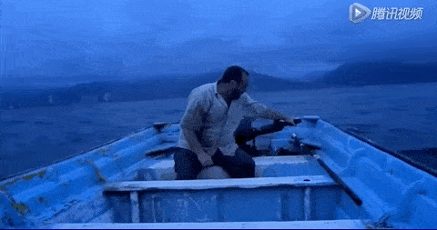 老金划着救生筏,载着被捆住手脚的李苗苗。
