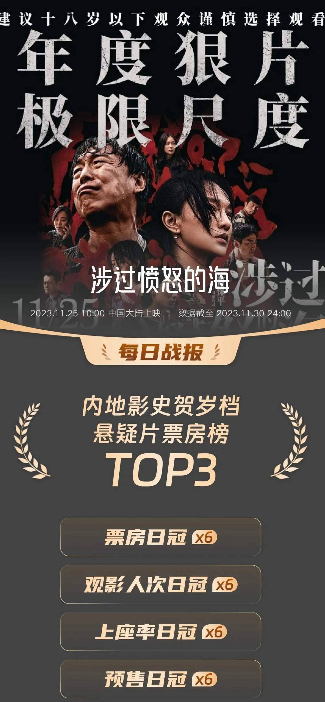 但在对手表现低迷的情况下,它连续六日大满贯,蝉联票房日冠,观影人次日冠,上座率日冠,预售日冠。