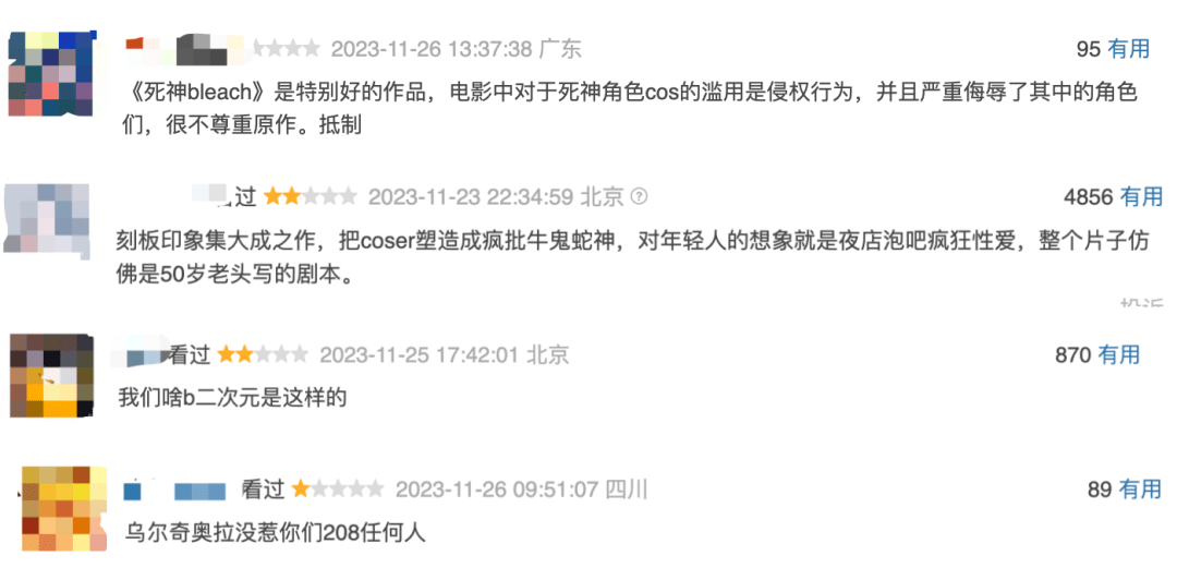 关于片中cosplay部分,他们认为这是把coser塑造成疯批牛鬼蛇神,充满对二次元群体的刻板印象。