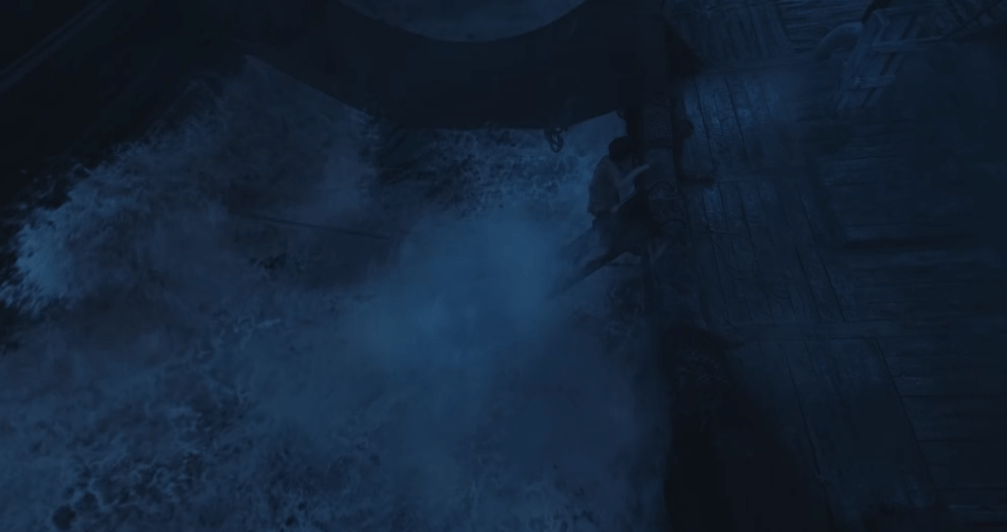 而到了第三集,基本能确定这一季的故事发生地集中在船上,这就框住了电视剧的场景,剧组搭一艘船,下面加个液压装置模拟船的摇晃,基本就是置景和道具的全部,第三集终于有了一点动作戏和大场面,但船体晃动、海浪的状态,以及飞溅水花的特写都差了那么一口气,缺乏真实感,摸着良心说,看完前三集,对后面的制作没有太多指望了。