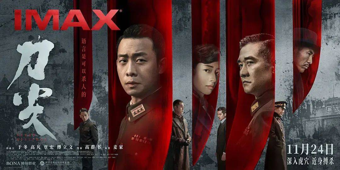 高群书执导,张译、黄志忠、郎月婷主演的谍战片《刀尖》三天报收3549万列第四,不算太差,但亦未能达到谍战商业片应有的表现,回收成本无望。而影片口碑也就马马虎虎,豆瓣6.3分,淘票票9.0分,观众普遍认为电影虽制作精良,但叙事流水账,这决定了本片难走出漂亮的票房后劲。